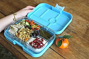 YUMBOX es una fiambrera reutilizable, ideal para todas tus comidas en el camino. YUMBOX está diseñada para ser delgada y ligera. Mide aprox. 8.5 x 6.5 x 1.8 pulgadas y pesa 1.1 lbs.